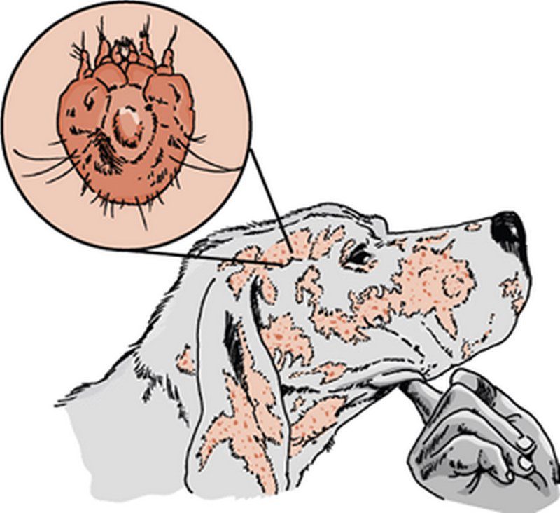 Sarcoptes scabiei تمام بدن بیشتر در سگ‌ها؛ در گربه‌ها بندرت