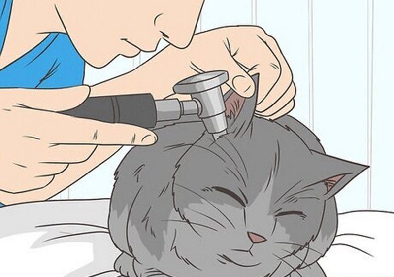 • در جرب گوش، گربه معمولاً سر خود را زیاد تکان می‌دهد و داخل گوش ترشحات تیره و خشک به رنگ قهوه‌ای مایل به سیاه دیده می‌شود.