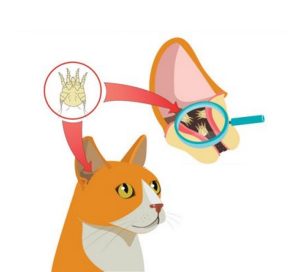 Otodectes cynotis گوش‌ها خارش، ترشحات تیره، تکان دادن سر