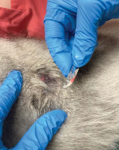 دامپزشک نمونه‌ای از پوست را با تیغ مخصوص بر می دارد و زیر میکروسکوپ بررسی می‌کند تا جرب ها یا تخم های آن‌ها را ببیند.