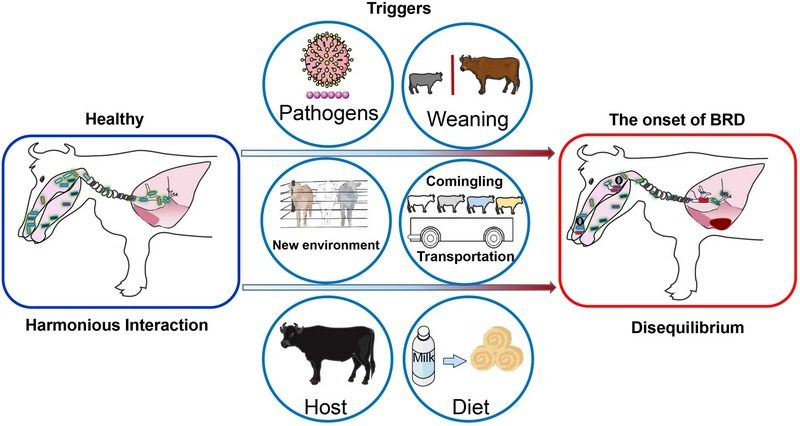 مقاومت آنتیبیوتیکی (AMR) در بیماریهای تنفسی دام، بهویژه گاو، گوسفند و بز، مشکل جهانی در دامپزشکی است که درمان عفونتهایی مانند پنومونی و بیماری تنفسی گاوی (BRD) را دشوار میکند. این بیماریها چندعاملی هستند و از تعامل پاتوژنهای باکتریایی مانند مانهایمیا همولیتیکا (Mannheimia haemolytica)، پاستورلا مولتوسیدا (Pasteurella multocida) و انتروباکتر هورمایکئی (Enterobacter hormaechei) با ویروسها و عوامل محیطی مانند حملونقل، تراکم بالا و تغییرات آبوهوایی ناشی میشوند. این عوامل سیستم ایمنی دام را تضعیف کرده و علائمی چون سرفه، تب، تنگی نفس و کاهش اشتها ایجاد میکنند. مقاومت آنتیبیوتیکی، بهویژه به بتالاکتامها و آمینوگلیکوزیدها، به دلیل استفاده نادرست آنتیبیوتیکها و عفونتهای مختلط شدت مییابد. برای درمان پنومونی گوسالهها، مصرف آنتیبیوتیکها رایج است اما ترکیبات گیاهی با اثرات ضدباکتریایی و ایمونومدولاتوری، و سینبیوتیکها با تغییر میکروبیوم تنفسی، به کاهش مصرف آنتی بیوتیک ها کمک میکنند. این بیماریها تولید شیر، وزن و عملکرد دام را کاهش داده و هزینههای اقتصادی سنگینی تحمیل میکنند. پیشگیری شامل تقویت سیستم ایمنی، بهبود تهویه، تغذیه متعادل و آزمایش حساسیت است تا درمان هدفمند انجام شود.