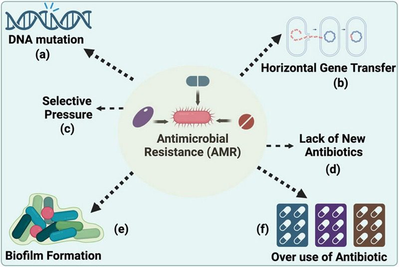 استفاده از آنتی‌بیوتیک‌ها به عنوان محرک رشد و برای پیشگیری از بیماری‌ها در خوراک طیور یک استراتژی رایج در صنعت پرورش مرغ‌ها به شمار می‌رود، اما این استفاده گسترده باعث بروز مقاومت آنتی‌بیوتیکی یا مقاومت ضدمیکروبی (AMR) در باکتری‌های بیماری‌زا شده است. آنتی‌بیوتیک‌ها نه تنها باکتری‌های بیماری‌زا را هدف قرار می‌دهند، بلکه باکتری‌های مفید روده را نیز از بین می‌برند و فشار انتخابی را افزایش می‌دهند، که در نهایت منجر به توسعه سویه‌های مقاوم می‌شود که می‌توانند ژن‌های مقاومت را به سایر باکتری‌ها منتقل کنند. مقاومت آنتی‌بیوتیکی می‌تواند از طرق زیر شکل بگیرد: